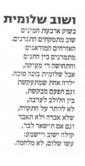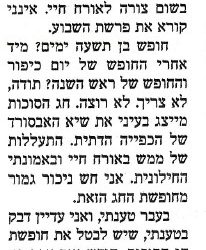 – חופש סוכות וחג הסוכות הם שיא הכפייה הדתית. הוא מרגיש ניכור גמור מהן.